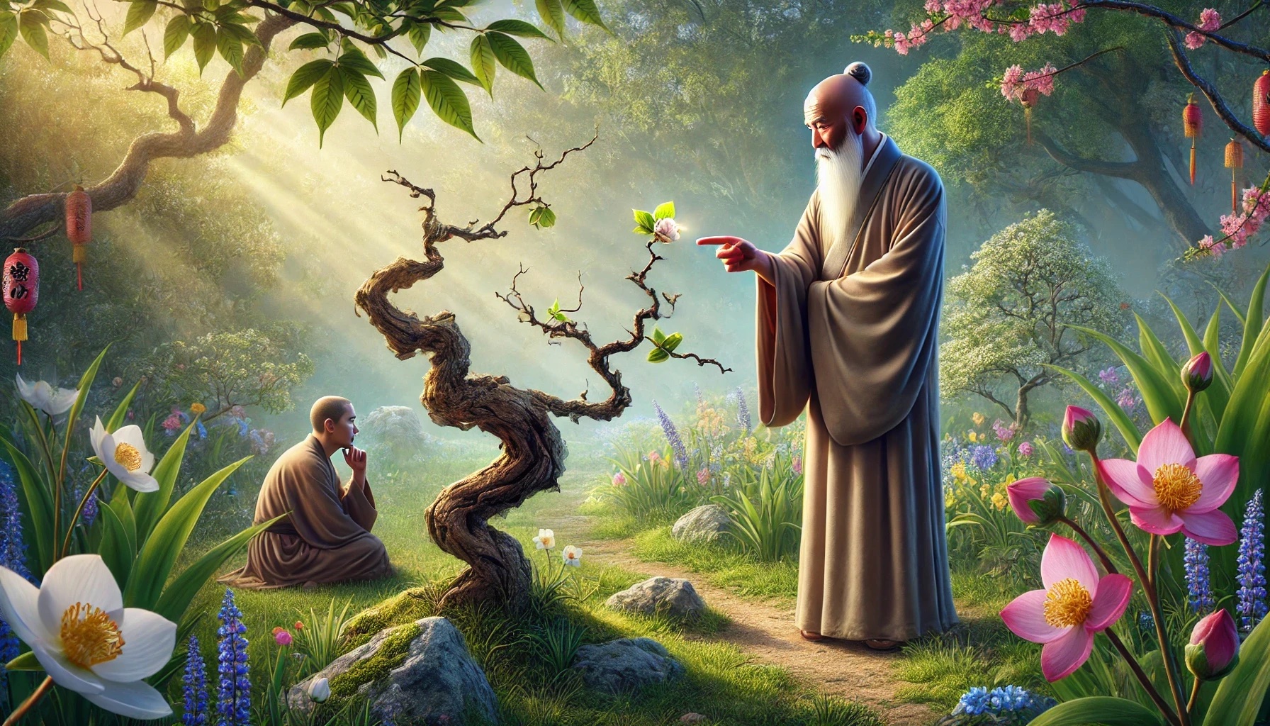 黄檗禅师用枯枝开花的象征教化弟子修行中的潜能。