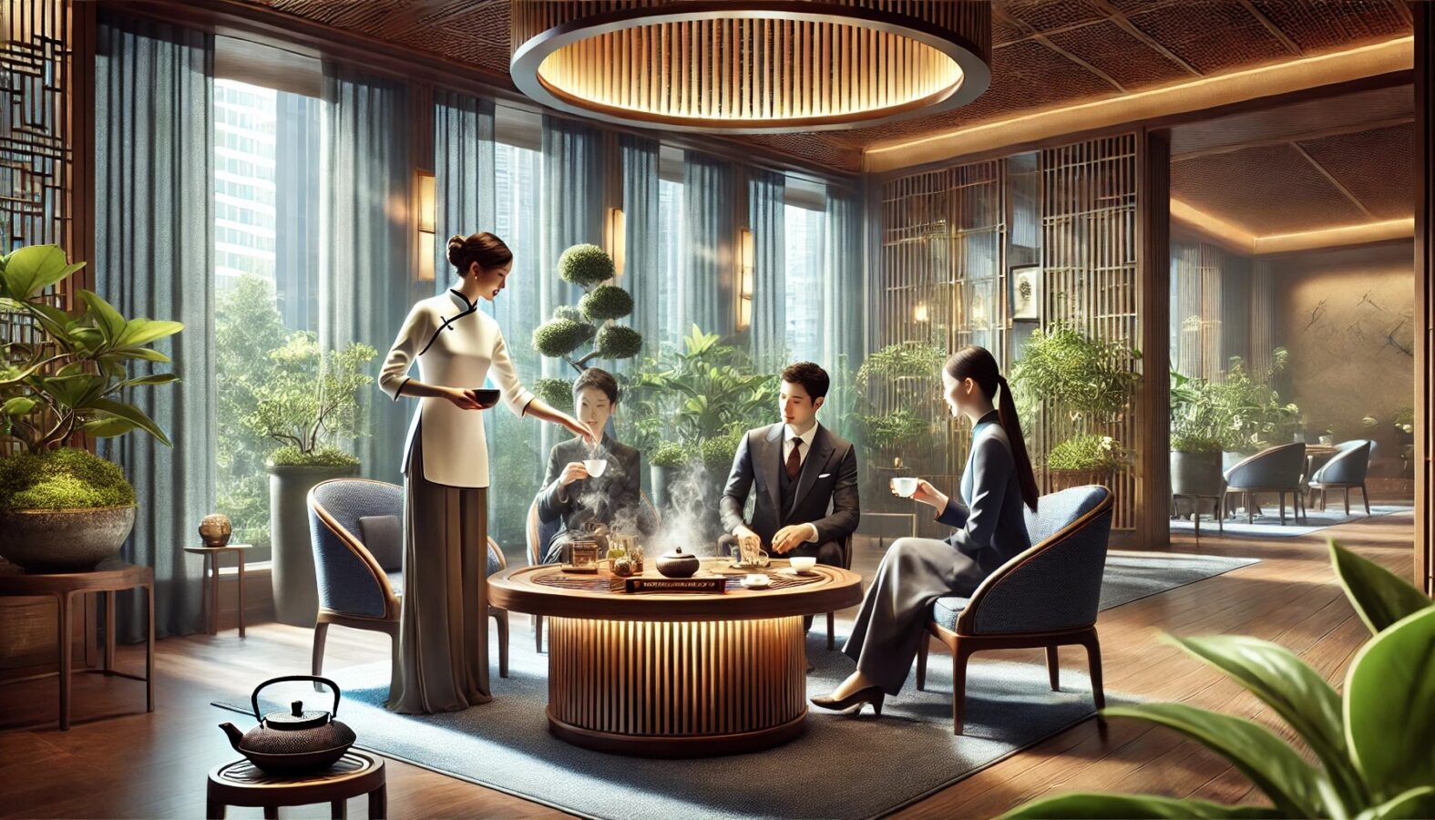 根据客人的口味与场合选择合适的茶叶,例如绿茶清新怡人,适合初次会面;乌龙茶香醇厚重,适合深度交流;普洱茶温润养生,适合年长者或商务场合。