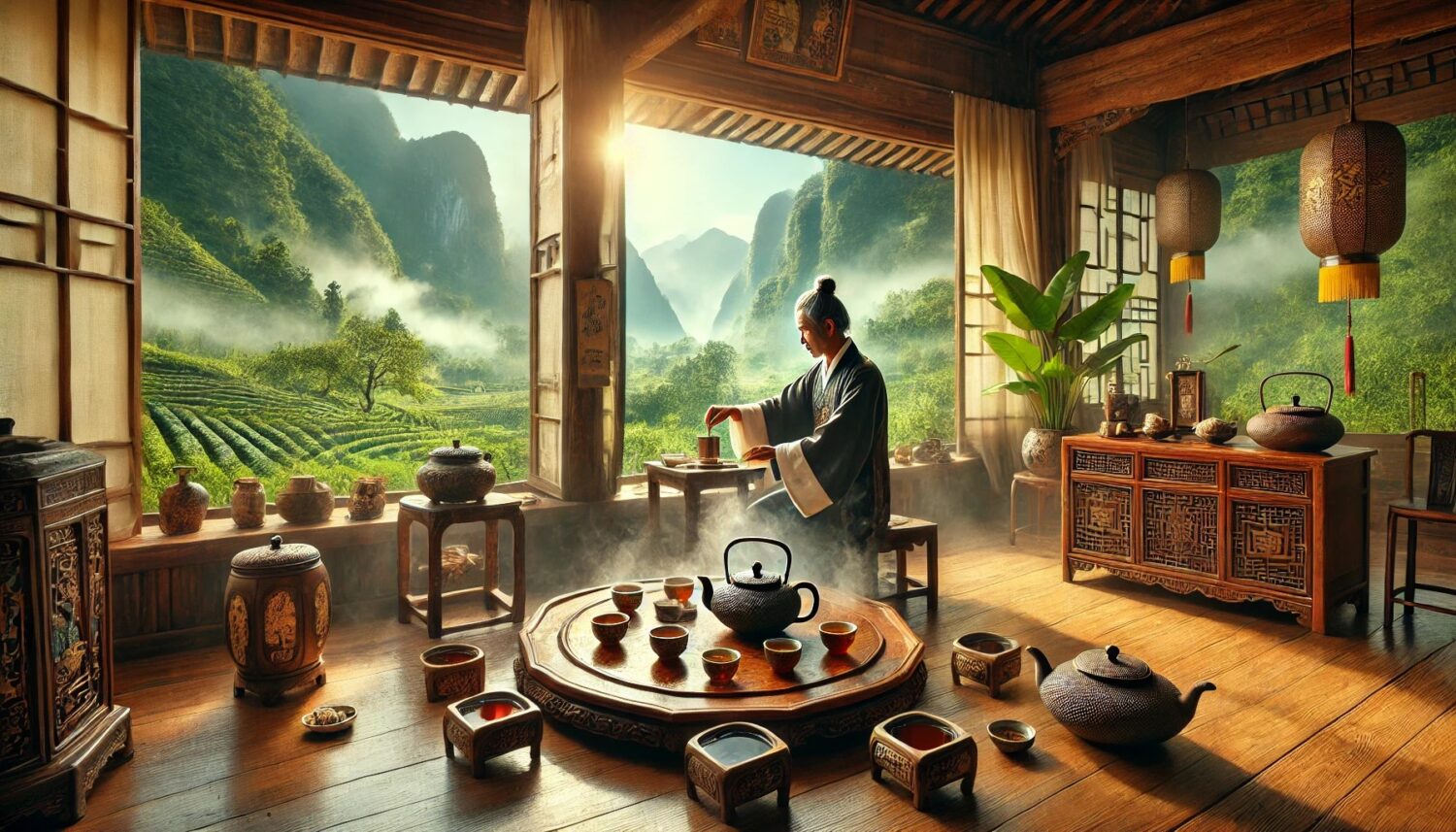 此外,云南普洱茶道强调与自然的融合,许多茶席布置会加入木质茶盘、竹制茶具,以及天然石器等,使茶席更具地域特色。