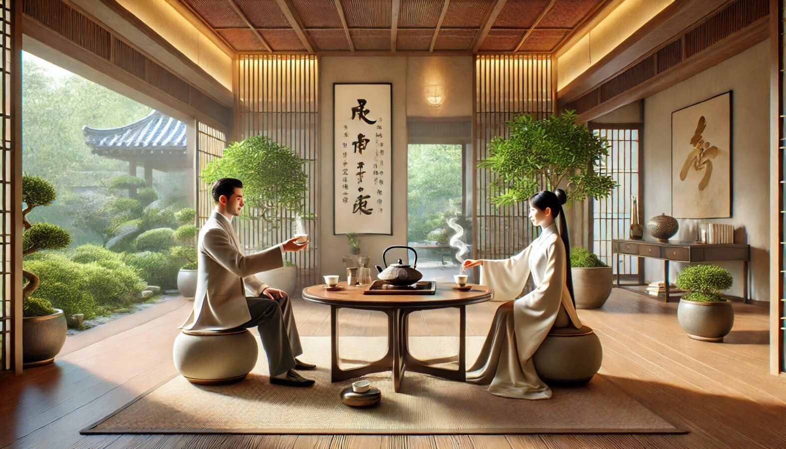 书法与茶:可以在茶席摆放书法作品,或邀请家人练习书法,在静心书写的同时享受茶的陪伴。