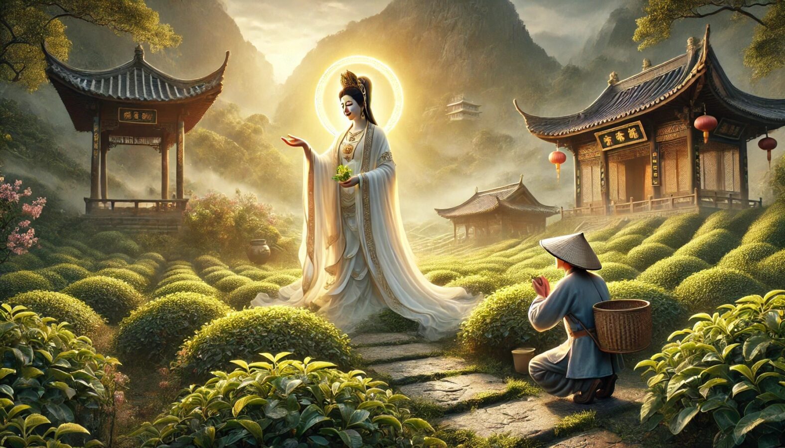 某夜,魏荫在梦中得到观音菩萨的启示,菩萨指引他说:“庙后的石缝中藏着一株灵茶树,此茶可助你改善生计,同时也可广泽众生。”魏荫醒后将信将疑,依梦中指引来到庙后,在一块岩石下果然发现了一棵奇特的茶树,叶片厚实,色泽墨绿如铁。他小心翼翼地将茶树移植回家,精心培育,并依传统手法采摘制茶。制出的茶汤色泽金黄,清香悠远,回甘持久,仿佛带着菩萨的庇佑。