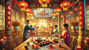 中国婚礼中的“敬茶”习俗,是茶文化与长辈尊敬传统结合的典型体现。新人向父母、祖辈以及家族长辈敬茶,表示感谢养育之恩,同时接受长辈的祝福与认可。这一仪式不仅代表着身份的转变,也象征着新家庭的建立和传统文化的延续。