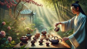 轻柔倒茶:使用盖碗泡茶时,轻轻倾斜盖碗,让茶汤缓慢流出,以减少细碎茶渣进入公道杯或茶杯中。