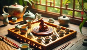 古典禅意风格:以深色木质茶盘、紫砂壶、禅意配件打造沉稳氛围。