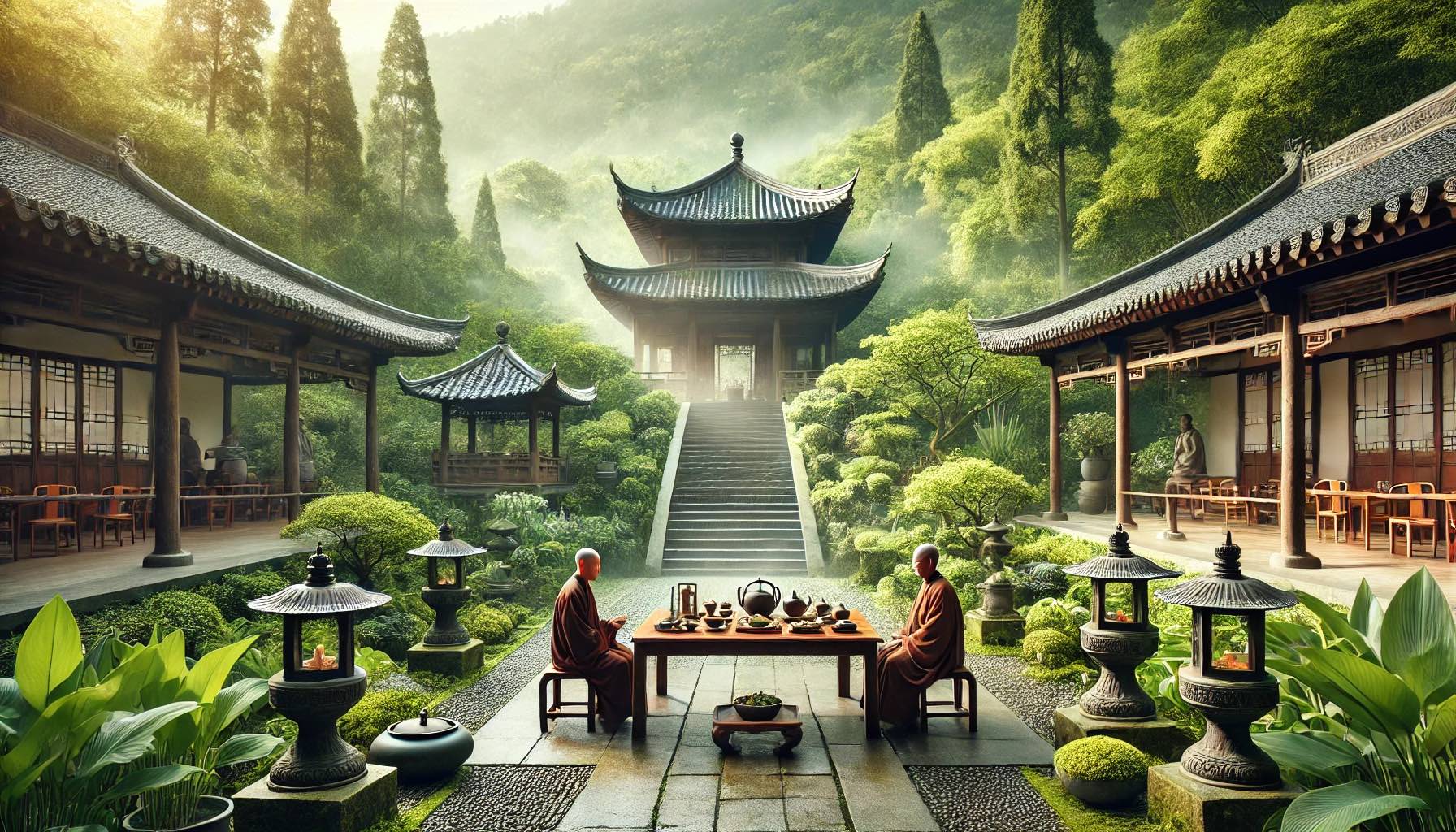 茶中的L-茶氨酸可镇定神经,而禅食因避免荤腥与刺激性食物,使人身心平和,减少暴躁情绪,更易进入修行状态。