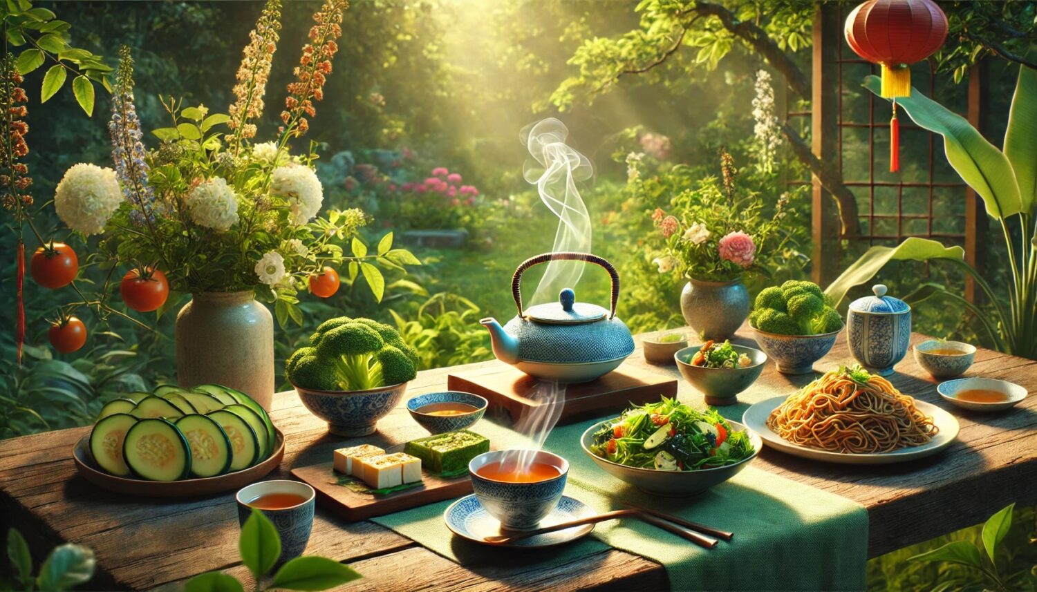 蒸蔬菜 + 轻焙火乌龙茶:清新搭配,减少口感单调感。