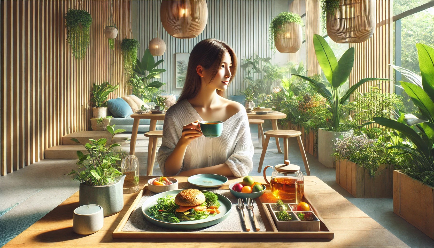 品茶时的宁静氛围,搭配清淡素雅的斋食,有助于放慢节奏,让人更容易进入平静状态,减少焦虑和过度思虑。