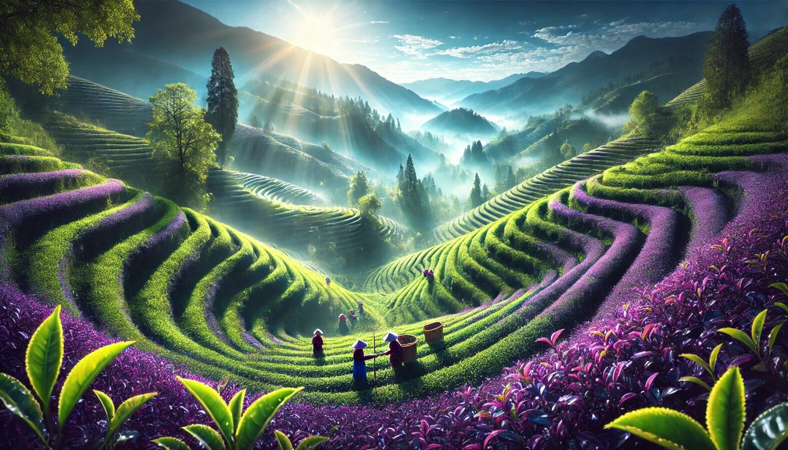紫芽茶是一种珍稀的变异型茶叶品种,其新芽呈天然紫色,主要因茶树体内花青素含量异常高所致。多分布于云南、四川、安徽、贵州等地高山茶区,尤以云南大叶种紫芽最为知名。