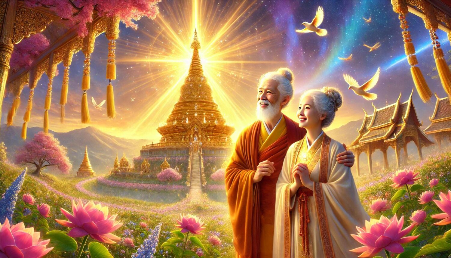 At that time, the bhikṣus present were greatly astonished and asked the Buddha why the two had such blessings. The Buddha replied that because the elder and his wife, while alive, diligently built stupas and monasteries and made offerings to the Three Jewels, they were reborn in heaven today. Upon hearing this, the bhikṣus all gave rise to unsurpassed faith in the truth of the Buddha’s teachings.
