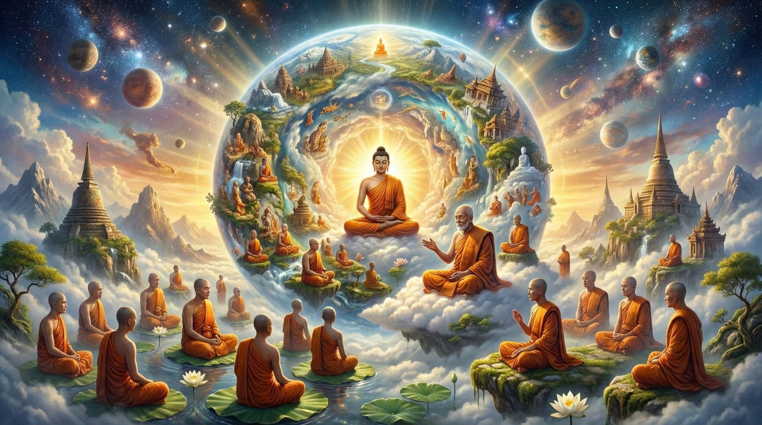 At that moment, the Buddha finished his afternoon meditation and came to the lecture hall. Everyone rose to greet him, temporarily pausing the conversation. After the Buddha inquired about their discussion, he picked up the topic.
