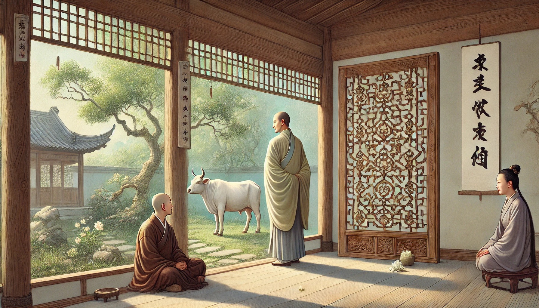 牛过窗棂 Usslmc77Dec 12, 2024Apr 16, 2026 牛过窗棂 背景: 赵州禅师用幽默的比喻解答禅学难题。 故事内容: 一僧问赵州:“师父,如何理解‘牛头过窗棂’的公案?” 赵州答:“牛头能过,尾巴为何过不得?” 僧问:“那尾巴该如何过?” 赵州笑道:“尾巴缩起来就过了!” 禅意: 修行中的问题并非复杂,需要灵活变通,有时放下多余的执念便可通达。 Post Views: 189 <span class="nav-subtitle screen-reader-text">Page</span> Previous Post石头搬走Next Post打破水瓶 Related Posts 我是谁 云门禅师用幽默的回答打破弟子的思维局限。 Usslmc77Jan 18, 2025 风吹竹 慧能禅师用自然景象教导弟子无为而安。 Usslmc77Jan 18, 2025 走路与修行 临济通过生活中的小事揭示修行的真谛。 Usslmc77Jan 18, 2025 Leave a Reply Cancel replyYou must be logged in to post a comment.