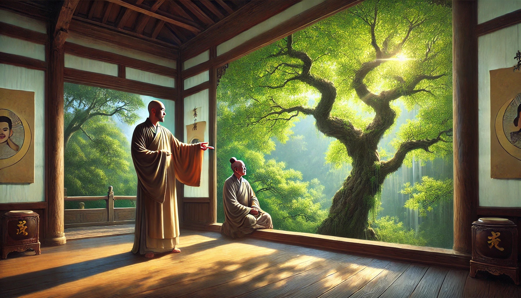 黄檗禅师通过深潭的平静启发弟子理解修行的内心状态。