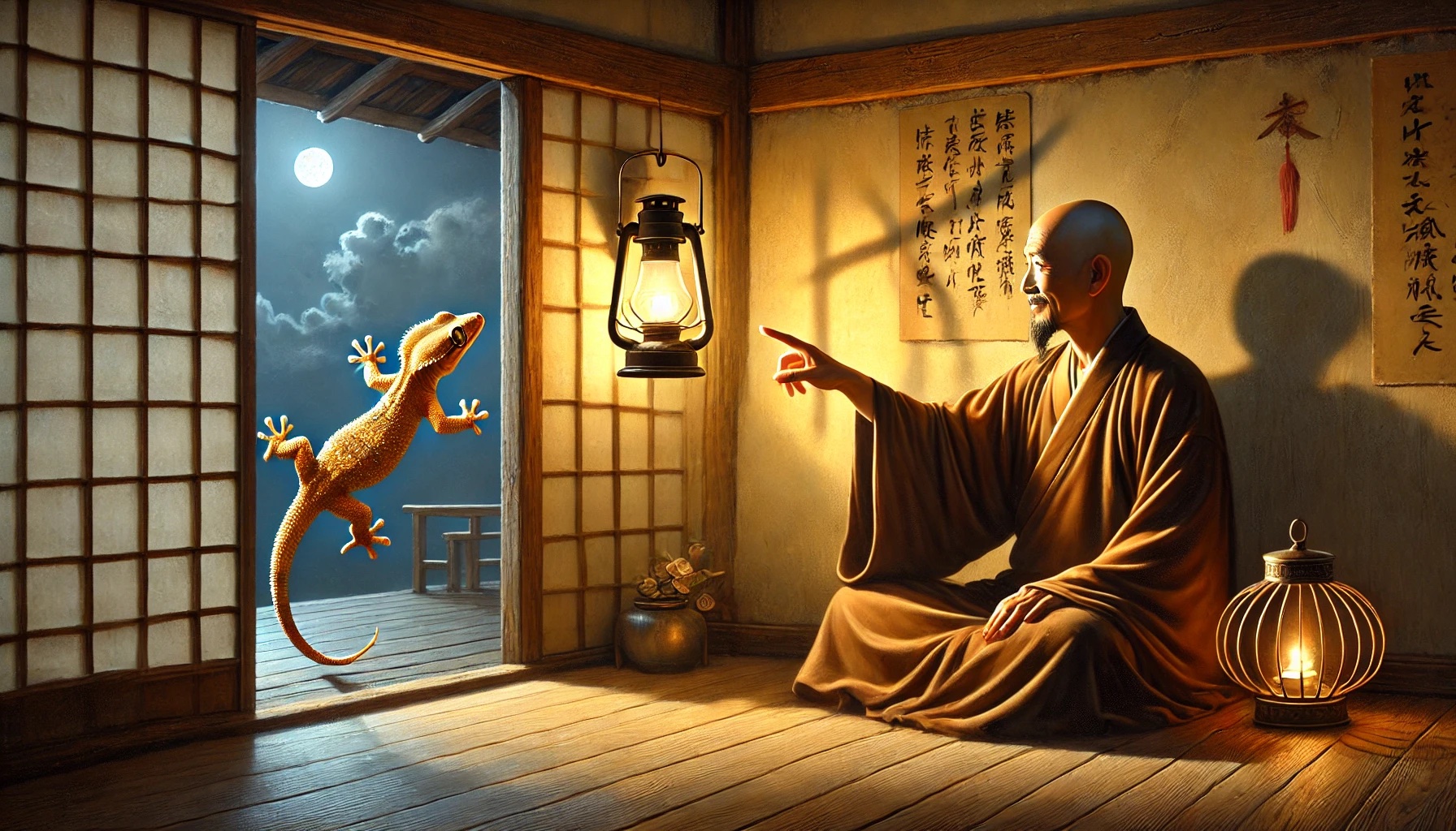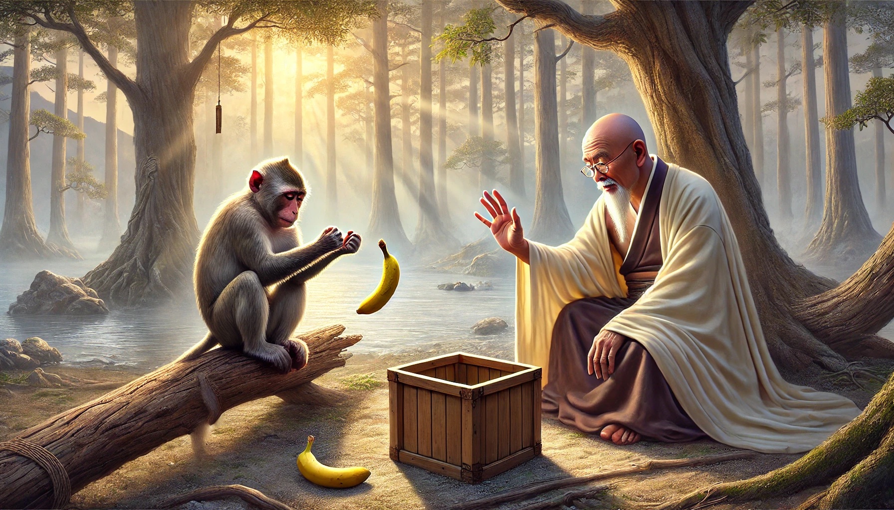 临济禅师用猴子抓香蕉的故事教化弟子如何放下。