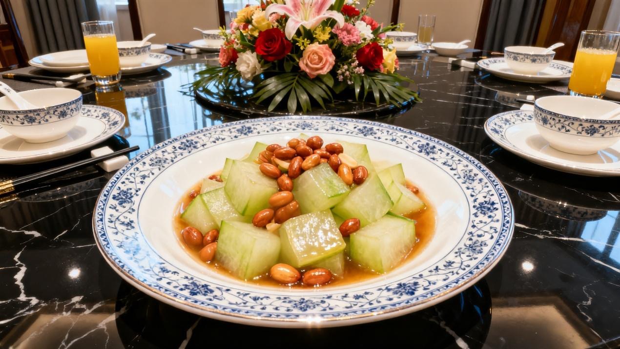 Stewed winter melon with peanuts is a light, soothing vegetarian dish...