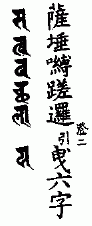 如是观想大明文字。各安布已。即当依法谛想文字真理法门。或复依法忆念持诵。于日三时依法布坛。持诵一百八遍。或一千八十遍。若一月或六月。乃至一年不间断者。即得最上胜悉地法。又复若闻若持若诵者。是人当得闻持具足证空三摩地。如是佛母般若波罗蜜多大明。最上甚深有大功德。修瑜伽者应依法如是观想。